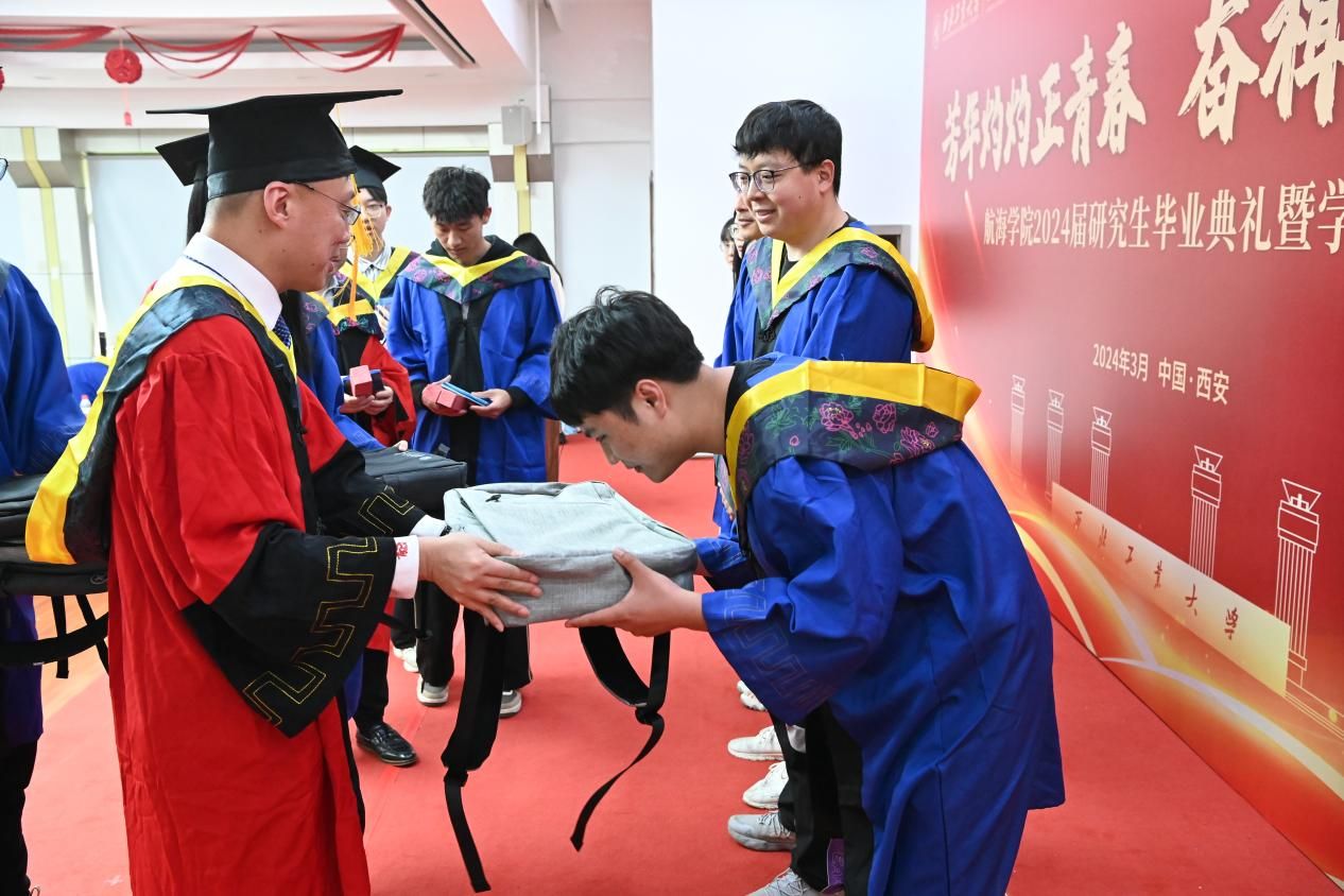 向毕业生代表赠送礼物,毕业生代表向学院赠送礼物。礼物承载着心意和情感,传递着学生与学院之间的深深眷恋与祝福。