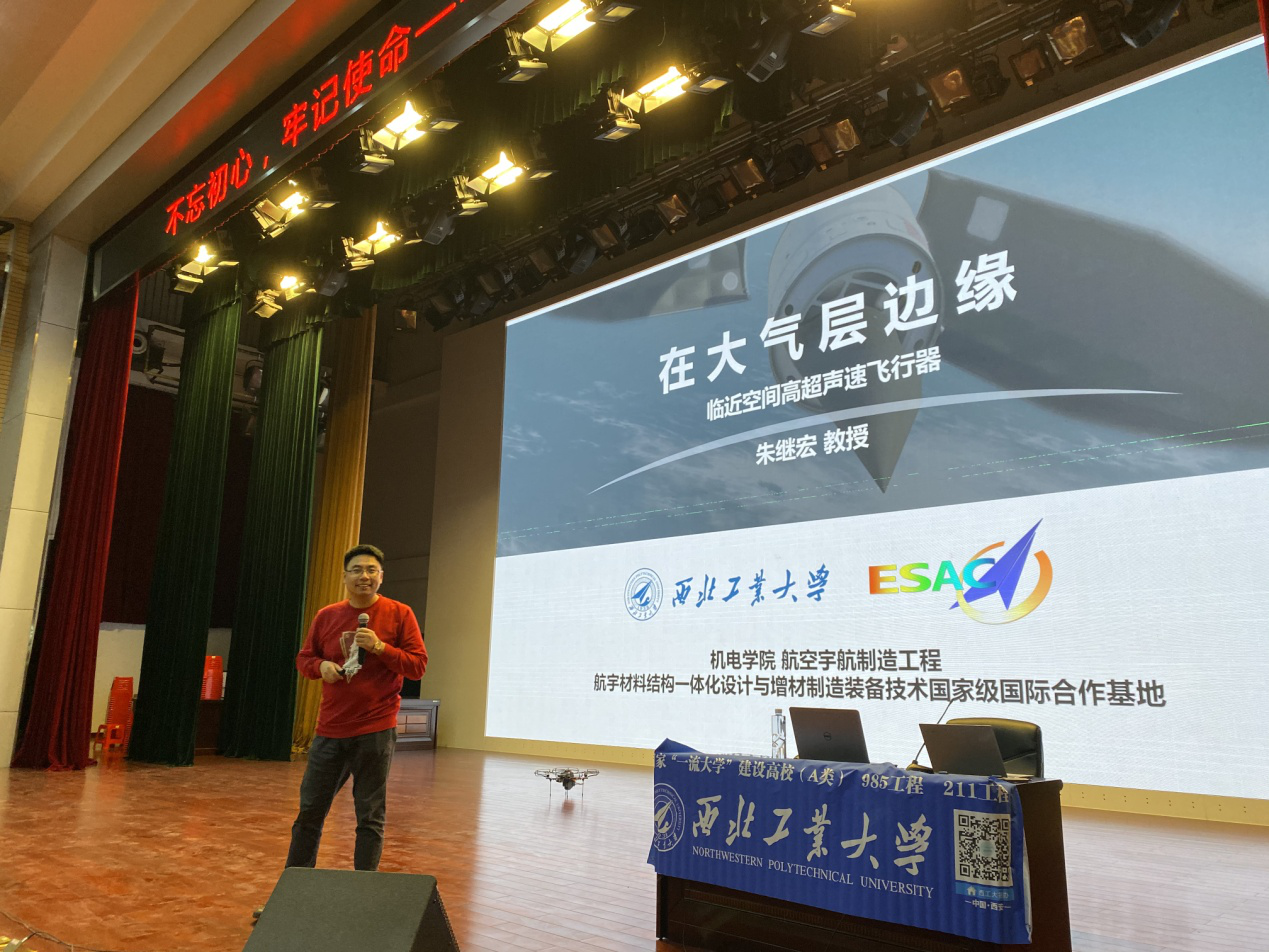 同日晚上,朱继宏教授在柳铁一中(城站校区)做了题为《在大气层的边缘》的科普报告,该校1300余名高一学生聆听了精彩的报告,朱继宏教授介绍了临近空间高超声速飞行器的发展状况及Av