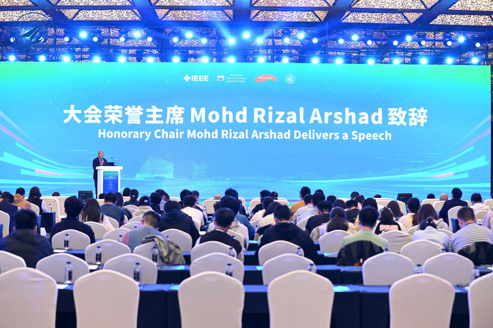 大会名誉主席Mohd Rizal Arshad教授致辞,他表示:国际水下系统与技术会议由IEEE Oceanic Engineering Society发起,每两年举办一次,是船舶与海洋工程领域具有重要国际影响力的学术会议之一,本次能够在Av