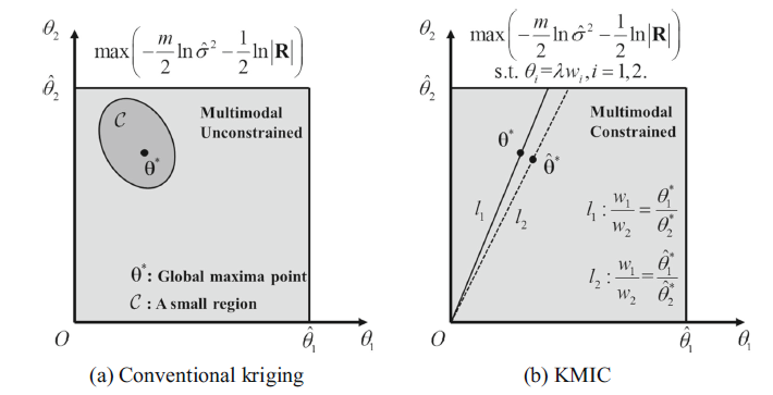 针对这一问题,赵亮等人提出了一种可用于高维问题的新型Kriging模型建模方法,研究成果目前发表在学术期刊《结构和多学科优化》上。在他们的研究中,考虑了Kriging模型对于高维问题建模效率较低的本质原因,利用Kriging模型中的优化超参数能够反映设计变量全局灵敏度信息的特点,使用最大信息系数(MIC)对优化超参数的大小进行快速预估,降低了Kriging模型构建过程中未知参数的数量,改进后只需要优化一个辅助参数就可以建立Kriging模型,从而显著提高了Kriging模型建模效率,缓解了Kriging模型难以应用于高维优化设计的问题。