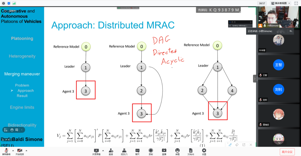 李乐老师邀请,荷兰代尔夫特理工大学Simone Baldi老师于线上开展自适应控制及应用课程,选课学生一共16人,其中2名本科生,14名研究生,本课程一共16学时,主要讲授自适应控制理论及其应用。介绍自适应控制系统分析和设计的基本理论和方法,包括前期知识,模型参考自适应控制、鲁棒自适应控制、自适应切换控制等;并结合实例介绍自适应控制在无人机路径跟踪、无人车编队保持等无人系统控制问题中的应用。