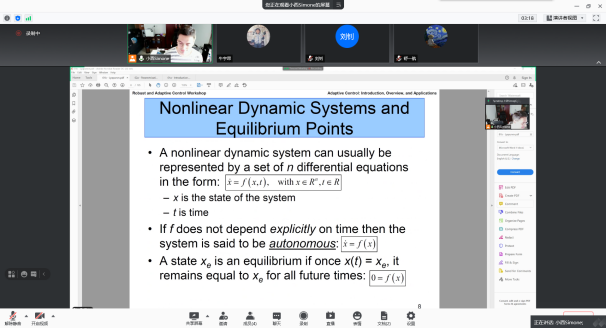 八天课程教学虽然短暂,但同学们对自适应控制的认识却有了很大程度的深入,同时对自适应控制的发展、应用以及前沿研究有了初步的了解,不仅开拓了同学们的视野,同时也能启发学生从多角度全方位的思考问题。