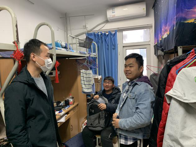 27日下午,张龙与2017级辅导员杜鹏,2018级辅导员黄潇来到友谊校区学生公寓看望返校的Av