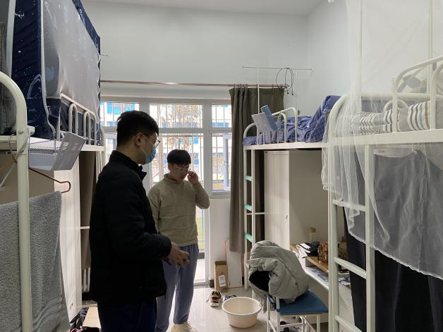 27日中午,院长助理张龙与学生事务主管崔晓来到了长安校区海天苑一号楼,看望刚刚返校的研一同学。张龙与崔晓逐个走访研一同学的宿舍,查看学生宿舍供暖情况,了解大家的旅途情况,并与部分同学沟通交流了有关本学期计划组织的学生活动的情况,针对性地提出了一些Av