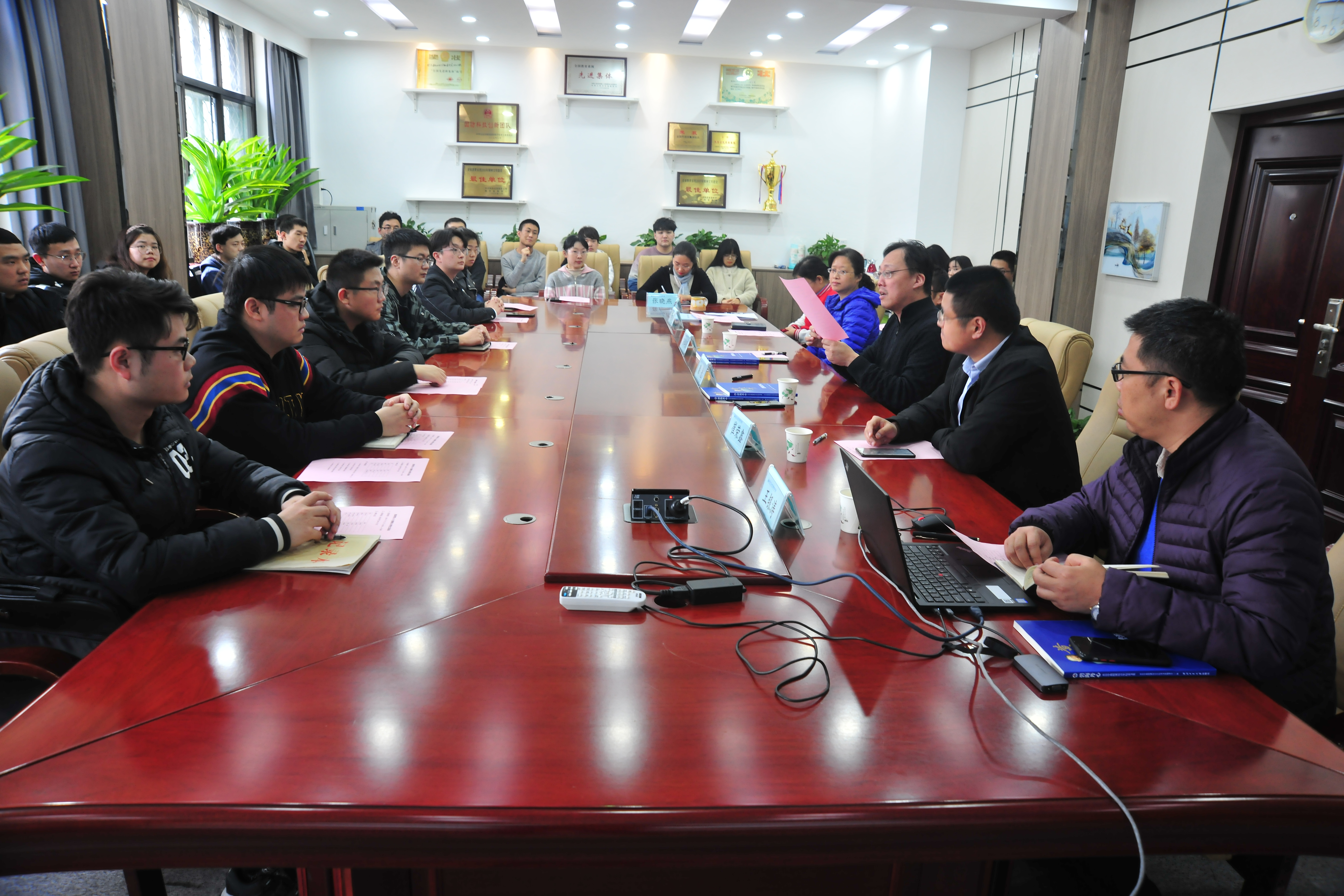 深造,并对同学们未来的博士生活提出了几点建议:建议大家在博士选题的时候要将个人兴趣与国家战略需求相结合,将个人的发展与国家的需要相结合;读博士期间注重工程实践经验,要将理论研究夯实,不能只建空中楼阁;重视实验研究,将理论研究与工程实践和实验研究结合起来,将研究做扎实。希望同学们能够成为学业上优秀,品行上端正,实践能力强的卓越型人才!
