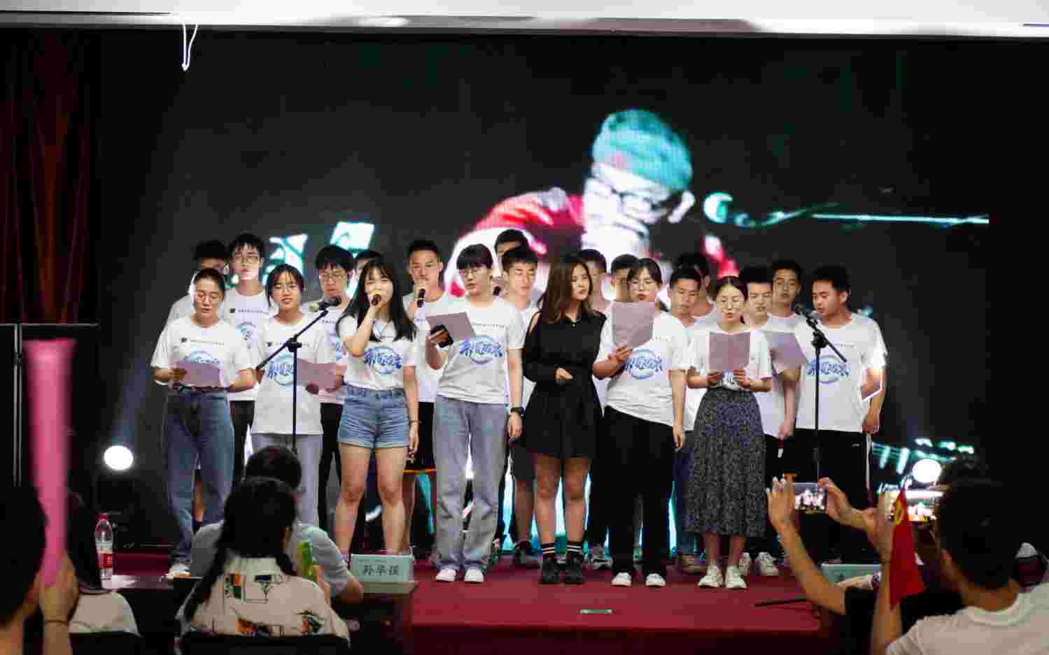 同学们各展所长,歌舞、相声、说唱等节目轮番上阵,潘光院长慷慨激昂的献唱了一首《花房姑娘》作为晚会的惊喜节目。三个游戏环节:红歌猜歌名、按图索骥、歌曲接唱让师生的欢声笑语充荡在晚会现场,最终晚会在合唱《再见》的歌声中画上了完美的句号。