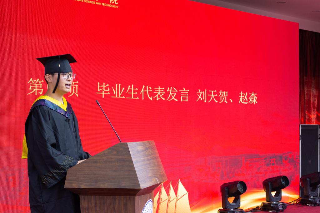 典礼第四项,毕业生代表刘天贺、赵森代表所有毕业生表达了对学院与老师四年辛勤教育的感谢,作为Av