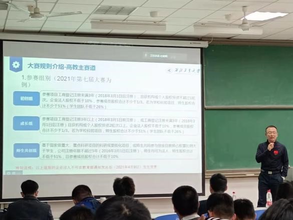 接着,贺华主任做了题为《中国国际“互联网+”大学生创新创业大赛赛道分析与选题》的报告。贺华主任从“互联网+”创新创业大赛历史演变、金奖复盘、赛道分析与选题讲起,向参会师生分享了大赛基本概况、Av