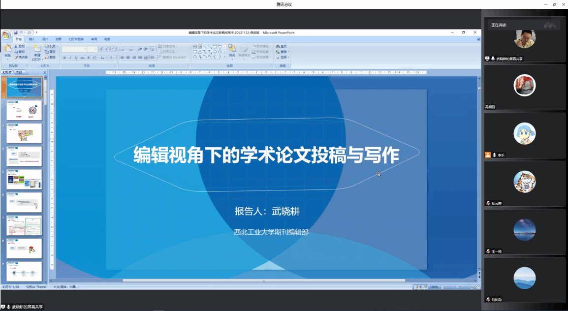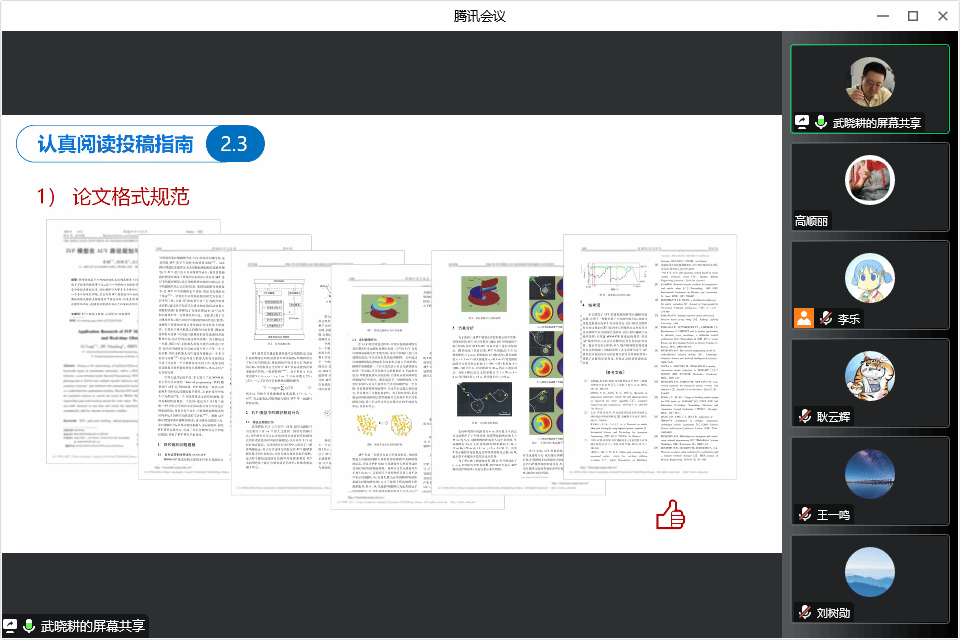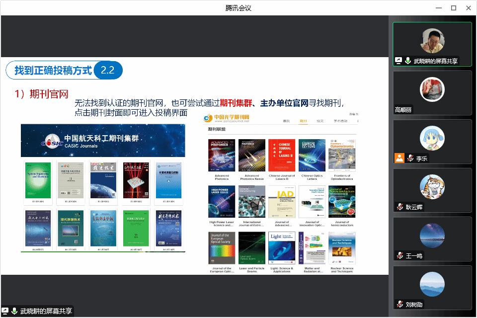 期刊编辑部主任武晓耕老师开展经验分享会,通过线上会议交流的方式,跟同学们深入探讨科技论文写作技巧与投稿心得,受到在场师生的热烈欢迎。Av