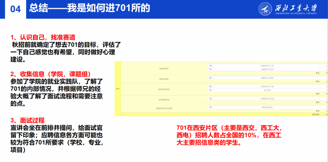 佘俊阳向大家分享了自己的秋招过程,介绍了研究所面试风格与特点,分享了在向位于不同城市的企业投递简历以及面试的时候应注意的细节。详细介绍了自己投递简历、面试、体检以及签约过程,给大家分享了研究所面试时候比较看重的点,给大家重点展开介绍了701所的面试过程。