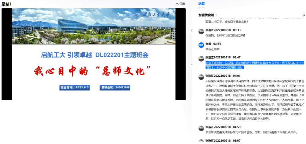 DL022201班召开了研讨总师文化的线上主题班会,由马克思主义学院贺苗老师进行主持。会议上,同学们踊跃发言,积极讨论。