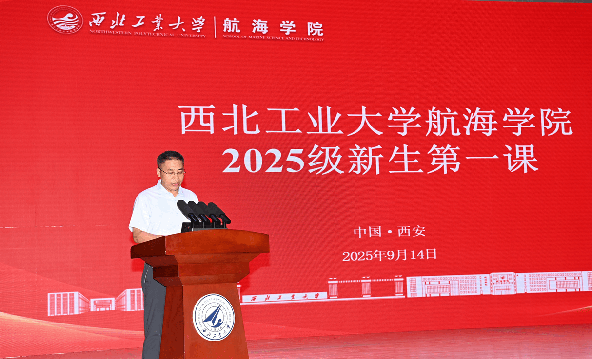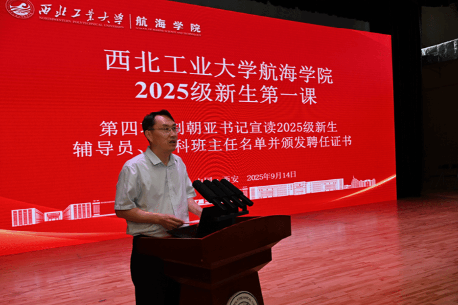 2025级新生第一课在长安校区南山艺堂拉开帷幕。学院院长潘光、党委书记刘朝亚、副院长曾向阳、党委副书记王银涛出席活动,2025级新生辅导员、本科班主任以及教学部、学院办公室教师代表与全体2025级新生齐聚一堂,共启新篇。活动由王银涛主持。