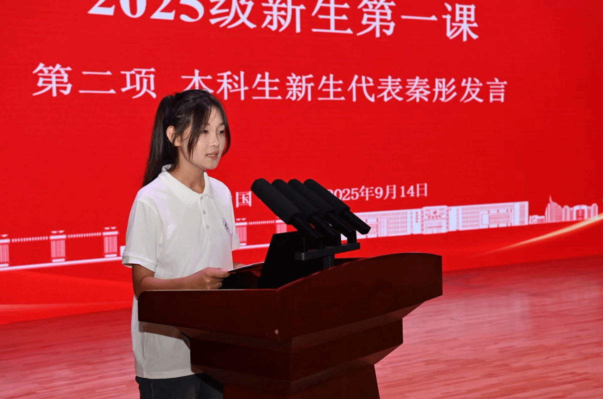 师者寄初心,同心赴新程。教师代表25级本科生辅导员强碧瑶与班主任黄潇以真诚话语传递师者温度。强碧瑶表示愿以“同行者”的身份陪伴新生成长,从学业解惑到生活关怀,用细致与热忱守护每一份青春理想;黄潇则寄语新生“怀揣蓝色梦想,厚植家国情怀”,并承诺将秉持“育国之栋梁,铸国之重器”的育人信念,引导同学们在专业深耕中涵养志存高远、胸怀家国的品格。