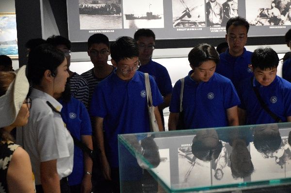 为近距离感受海军发展历程、厚植爱国强军情怀,实践队员分别走进了被誉为"海军军官摇篮"的大连舰艇学院和位于青岛的潜艇学院。在大连舰艇学院,大家参观了现代化的教学设施和训练场地,观摩舰艇模拟操作,并学习了解了蔡一清烈士的光荣事迹,深刻感受到海军严谨的治学态度和过硬的军事素质。走进潜艇学院,队员们一步一步探索潜艇学院的前世今生,在荣誉室内,通过一幅幅历史照片和珍贵实物,系统学习我国潜艇部队从无到有、由弱到强的发展历程。