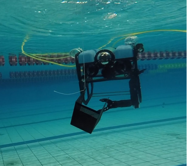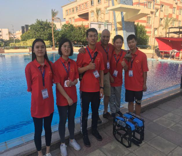 国际合作处和海洋无人智能感知实验室的大力支持下,在王惠刚教授和胡浩助理教授的指导下,经过近4个月的紧张备战,设计完成了能够实现远程操控运动灵活的水下航行器。该航行器水下遥控灵活,运动速度高,搭载一台高自由度机械臂,能够实现水下复杂的抓取任务。同时配合水下光学传感,能够完成水下识别、水下观测、水下打捞和测距等任务。特别是基于光学的水下测距任务和机械臂的自我开发得到主办方的大力赞扬,获得最佳软件创新奖和单任务最快时间奖。