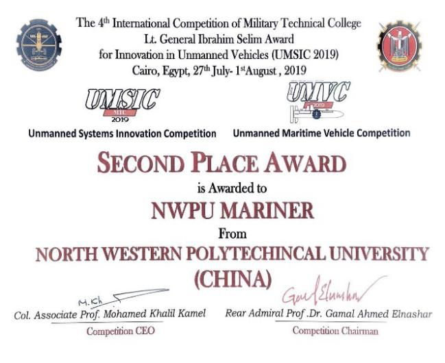 代表队首次参加无人水下平台系统(UMVC)比赛,即从15支参赛队中脱颖而出,勇夺无人水下平台系统(UMVC)比赛第二名。