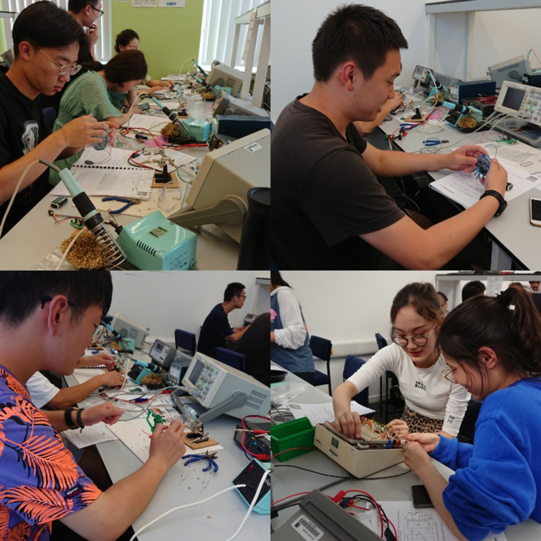 本次学习以实验课程为主要内容,在提高学生英文表达能力的同时提高动手能力,自制555计时器、红绿灯以及电子元件的焊接等内容。英方对课程的安排十分用心,课程循序渐进,课量适中,课程衔接十分合适,同学们在压力并不大的课程之中有所收获。与助教、老师的交流对于同学们的口语提高极大,在纯英文环境中,每个人对于英语的理解力都得到提高。