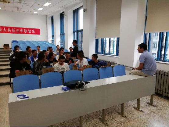 在长安校区教西D205教室举行海洋工程大类本科新生中秋佳节慰问会,院长助理张龙老师,新生辅导员王士刚老师、刘星老师以及各班班主任出席活动,活动由张龙老师主持。