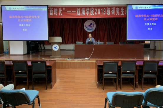崔荣鑫副院长在教学西馆102教室为海院全体研究生新生开展专业认知教育第一课。