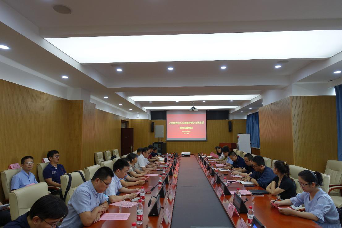 正值中国共产党成立100周年之际,为进一步促进基层党组织工作质量提升,实现党支部在结对共建活动中优势互补、共同提高目标,增强党组织内在发展动力与活力,丰富活动组织形式,2021年7月1日,艺术教育中心支部书记、副主任台炳龙等一行14人来Av