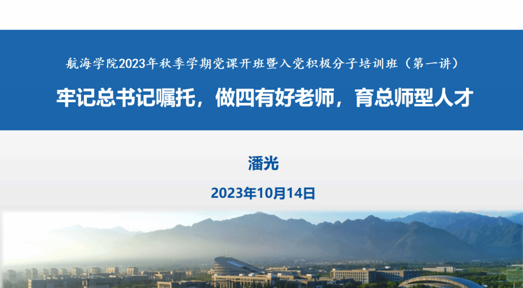 为认真做好党员发展工作,充实党员队伍后备军,确保发展党员质量,10月14日上午,2023年秋季Av 党员发展培训班顺利开班,Av 院长潘光受邀为入党积极分子培训班带来主题为“牢记总书记嘱托,做四有好老师,育总师型人才”的党课。