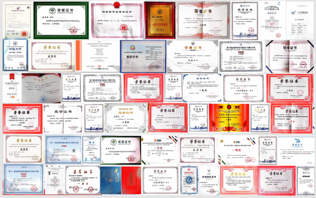 在科研竞赛方面,取得包括中国机器人大赛国家级冠军,全国海洋航行器设计与制作大赛国家级特等奖,全国机器人锦标赛国家级一等奖在内的多项竞赛奖励。作为创始人带领学生创新团队入驻飞天创客空间。作为负责人的国家级大创项目获得优秀结题,所设计的新型航行器授权实用新型专利一项,获得多项竞赛奖励。