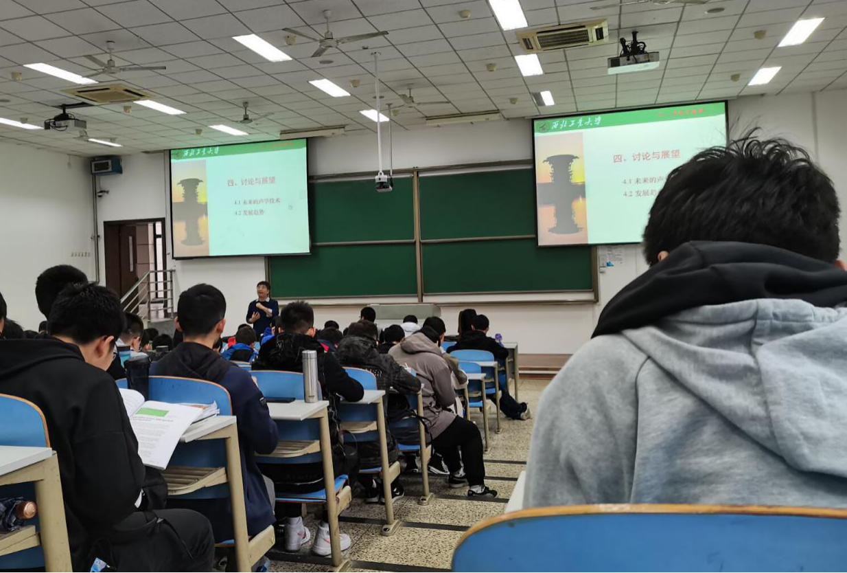课程最后,陈老师介绍了未来的声学技术,未来声学技术以“隐身至无形”的水下航行器、“梦幻至真”的智能声学、“舒适至极”的振声环境为趋势,以人为本、学科交叉、技术融合是大的发展趋势,是科研发展新方向。