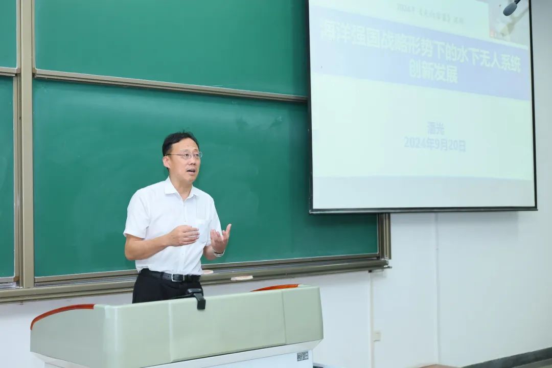 院长、博士生导师、国家级人才、“无人水下运载技术”工信部重点实验室主任潘光走上讲台,以《走向深蓝——我海洋强国战略形势下的无人系统创新发展》为主题进行授课。Av