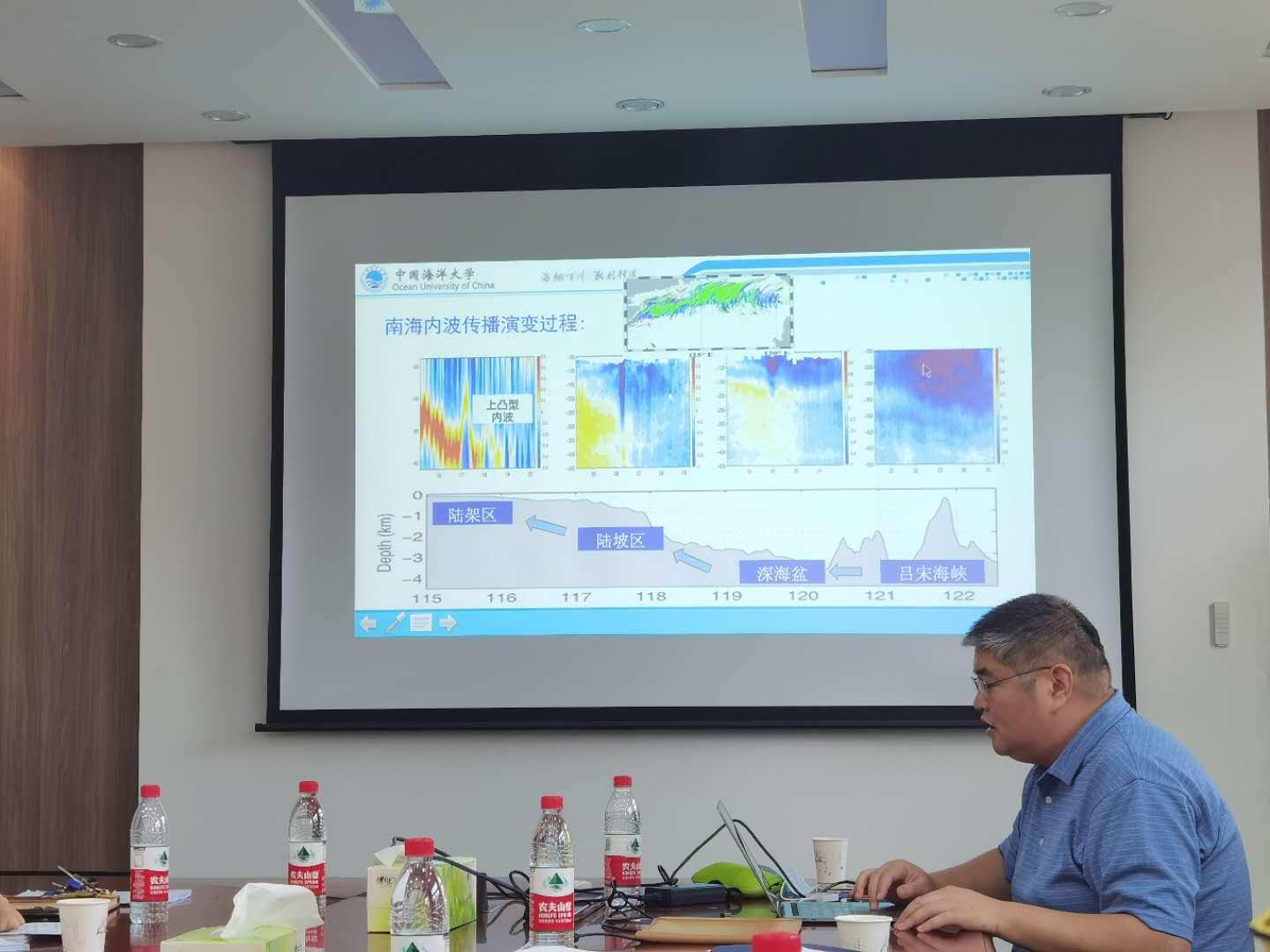 赵玮教授的报告题目为“基于南海潜标观测网的海洋多尺度动力过程研究”。赵玮教授结合自己的学习、工作经历和研究创新实践,从科学背景、南海潜标观测网的构建、南海多尺度动力过程观测研究、南海内波观测研究及应用以及未来展望五个方面进行了阐述。赵玮教授的报告深入浅出,认为海洋的研究应该趋于多尺度共同主导的瞬变过程研究。赵玮教授首先全面介绍了内波、锋面、中尺度涡等现象的机理以及对海洋装备影响大的科学背景。然后介绍了自主构建的以42套潜标为主体的世界上规模最大的区域海洋观测潜标网,以及南海多尺度动力过程观测研究进展。接着重点介绍了南海内波观测研究及开发的多代内波预警预测系统。最后,赵玮教授对未来的工作进行了展望,并希望与西北工业大学航海学院合作,结合航海学院在海洋声学、水声工程等方面扎实的研究基础,开发新一代内波预警预测系统。随后,参会师生积极发言,热烈讨论,与赵玮教授进行了交流。赵玮教授一一详细地回答了提问。讨论热烈而深刻,与会师生纷纷表示受益匪浅。