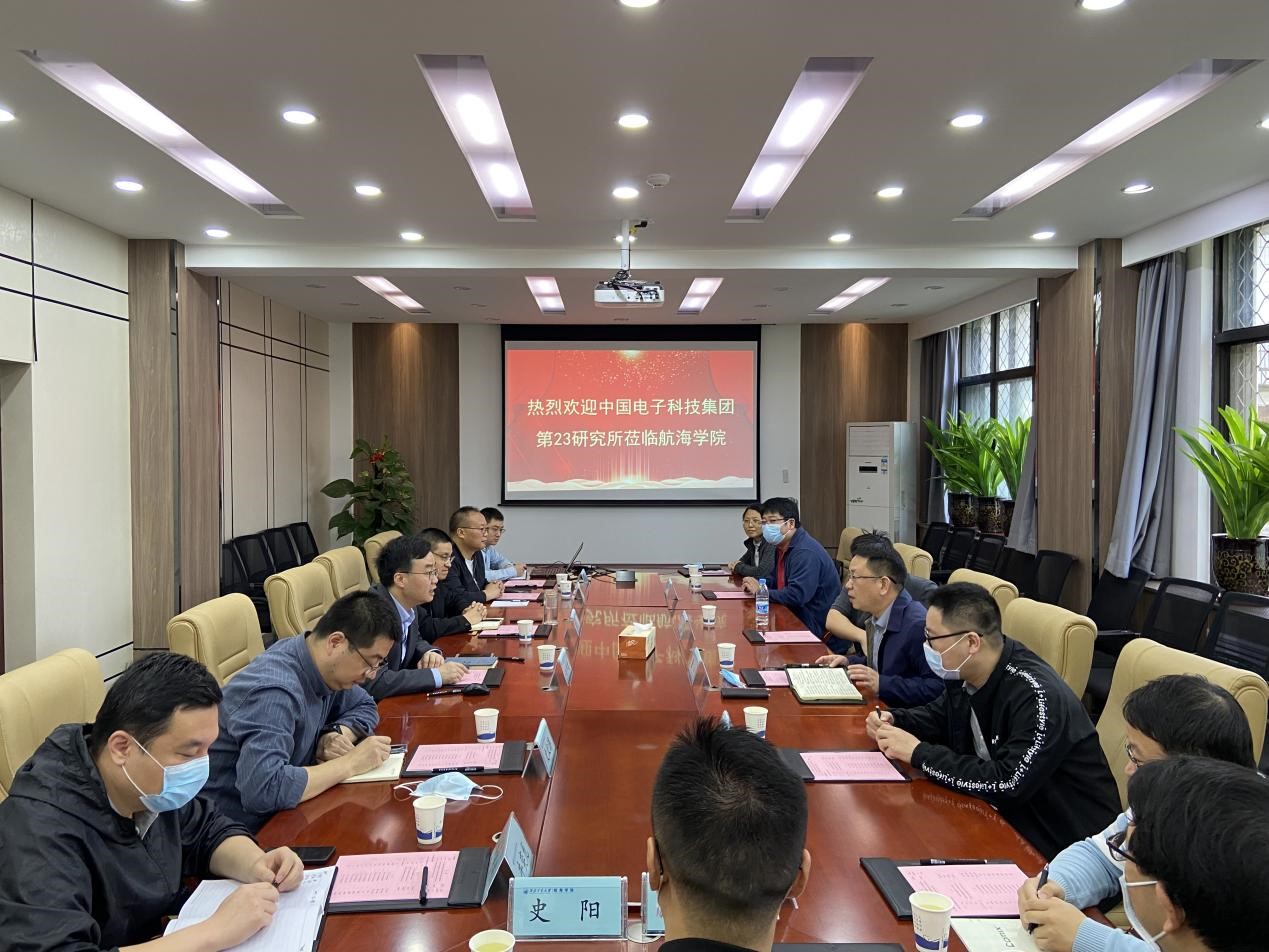 会议伊始,杨坤德对中电23所一行来学院调研访问表示热烈欢迎,并从学院发展历程、师资队伍、人才培养、科研平台建设与开展情况等方面介绍了航海学院总体情况。随后查林介绍了中电集团作为军工电子行业主力军,网信事业国家队所肩负的责任与使命,并从研究所历史沿革,专业发展,区域布局,行业地位,主责主业与代表产品等方面介绍了中电23所的整体情况,希望与航海学院在科学研究、人才培养等方面加强校企联系。