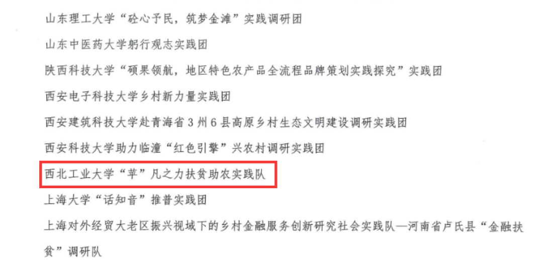近日,西北工业大学航海学院“苹”凡之力扶贫助农实践队成功入选宁波大学团委、宁波大学中国乡村政策与实践研究院组织的2021年“走近千村观察,助力乡村振兴”全国大学生暑期社会实践专项活动。据了解,前期主办方共收到来自257所高校的543支队伍申报材料。结合申报团队综合条件及实施方案,遴选产生了100支社会实践团队。