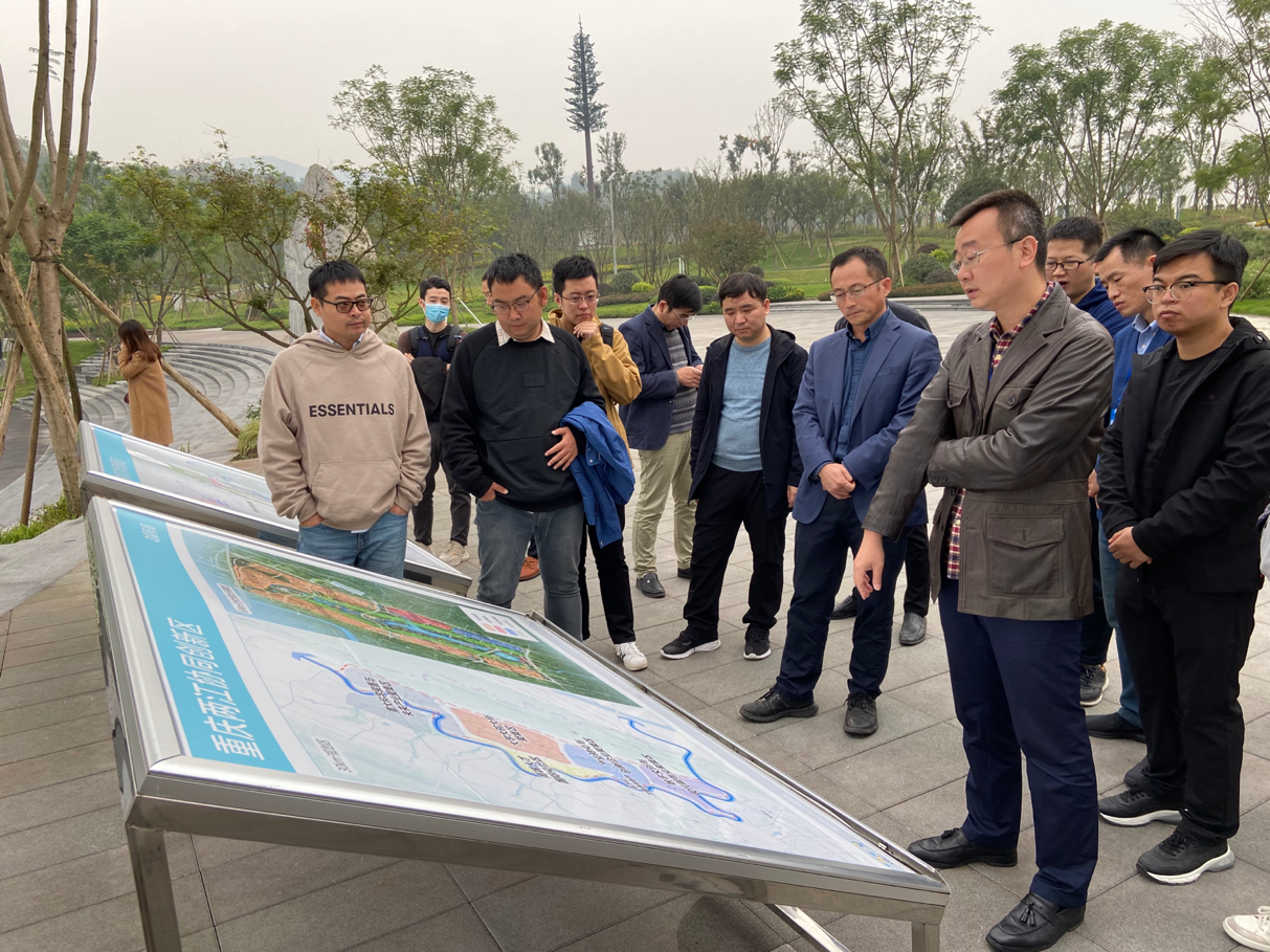 10月26日上午,学院青年教师实践队伍到达重庆,在西北工业大学重庆科创中心副主任齐天的带领下来到了位于重庆两江新区的两江协同创新区,第一站首先前往创新区中心的明月湖参观,在现场听取了对于两江协同创新区建设进度的讲解,并实地探访了西北工业大学重庆科创中心的建设情况,齐天代表西工大重庆科创中心表达了未来与航海学院开展深入合作的愿景与期待。