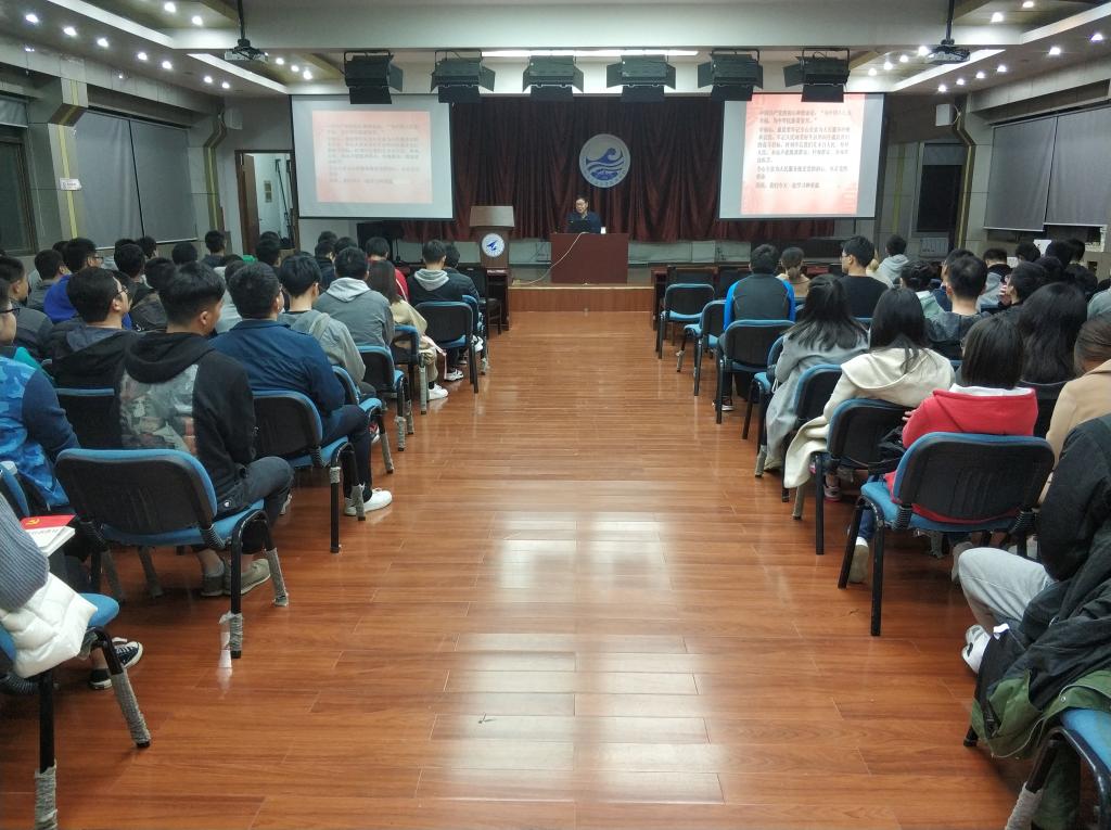 10月24日晚上19:00,航海学院第93期(友谊校区)入党积极分子培训班第一次理论培训课程在学院东配楼大教室召开。本次课程由航海学院原党委书记王育才教授主讲,院长助理张龙老师主持,航海学院、航天学院入党积极分子参与了本次培训。