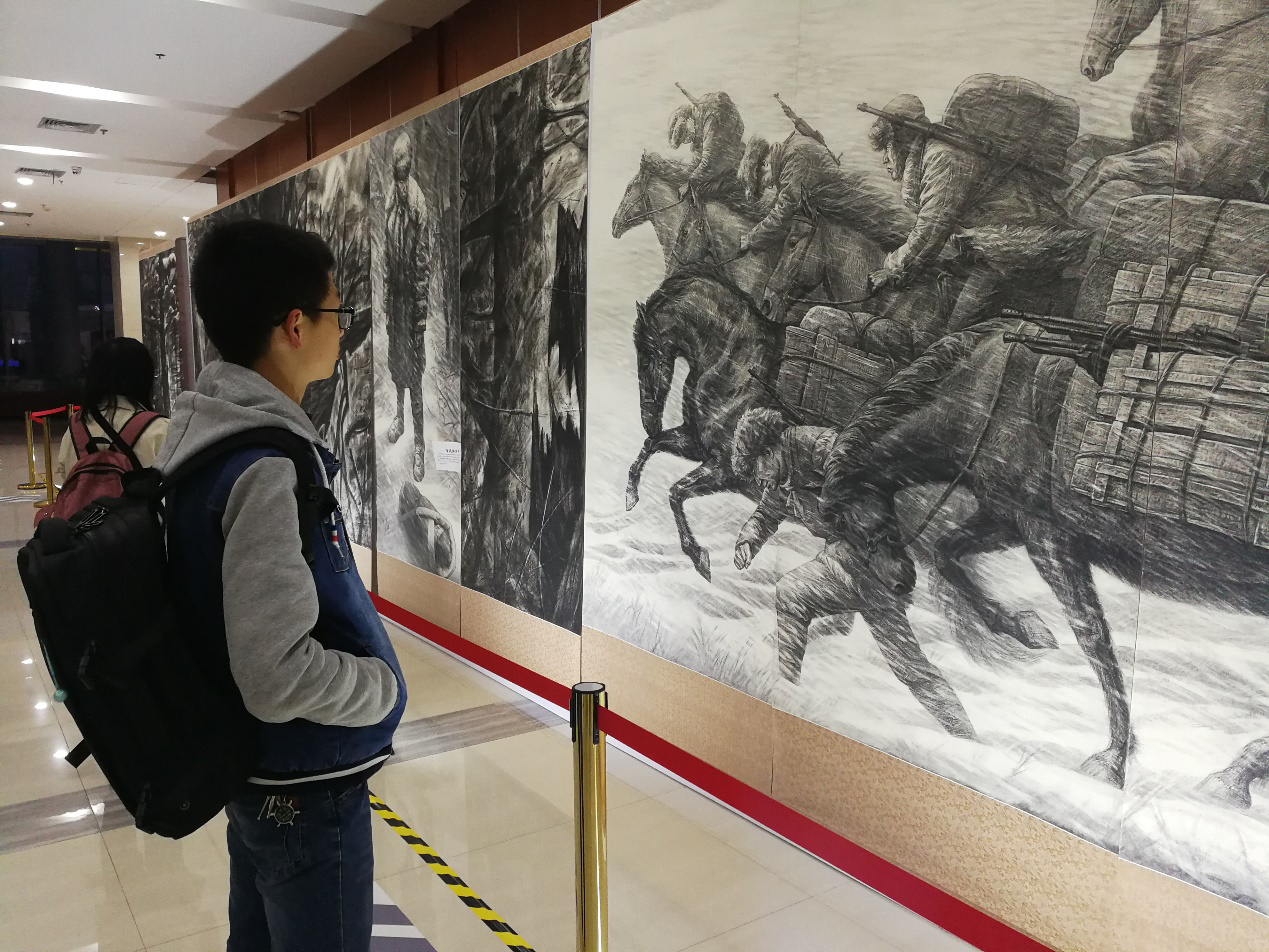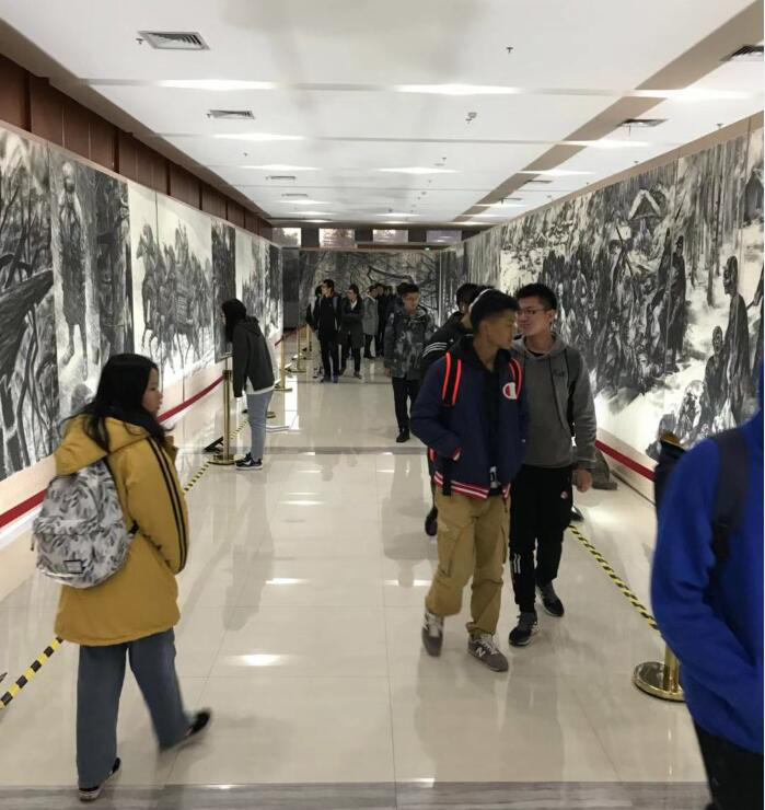 纵使风餐露宿,眠冰卧雪,纵使缺衣少食,给养匮乏,抗联英烈依旧艰苦奋斗着,拼尽全力与敌人周旋。他们英勇无畏,百折不挠,用血肉之躯书写了一段可歌可泣的抗战历史。为了解抗联历史,学习先烈不惧艰险、甘于奉献的优秀品质,11月13日下午18:00,在航海学院院长助理张龙老师、马克思主义学院陈诚平老师和海洋工程类2019级辅导员王士刚老师的带领下,航海学院初级党校培训班全体同学前往启真楼一楼参观“抗联之魂”主题全景素描展览。