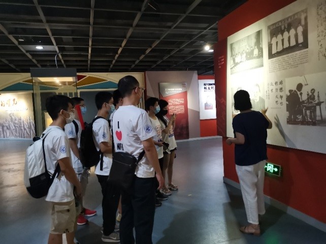 上午9时许,实践队到达嘉兴五四文化博物馆。任树伟老师首先进行了简短的实践教学开班仪式,并与博物馆方馆长一同进行了大学生“红色传人”教育实践基地挂牌仪式。尔后,通过博物馆讲解员的现场教学,队员们学习了从五四运动到建党前期的运动思潮,了解了五四运动与中共一大的关系。队员们还参观了嘉兴百年风云人物,看到了百年间嘉兴人才辈出,慨叹新时代的今天离不开这些前辈的呕心沥血。
