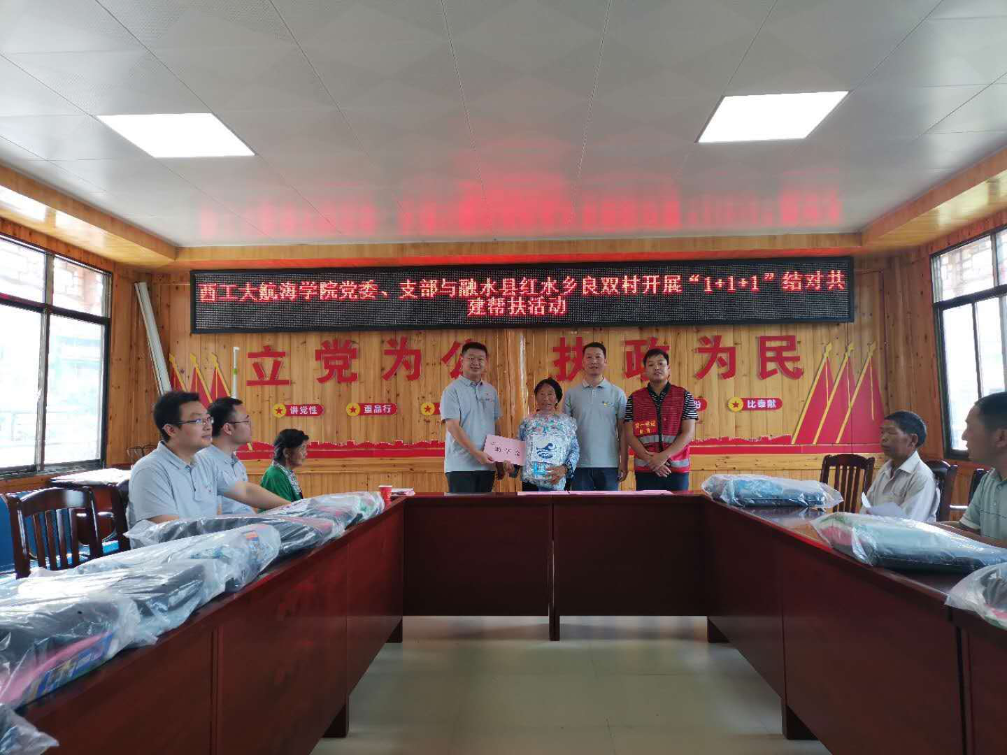 9月2日至5日,航海学院党委派出教工党支部书记、学生党员代表博士研究生、学院组织员一行6人,代表全院151名教工党员和37名参与“1+1+1”党员结对帮扶工作的学生党员,赴广西融水县红水乡良双村和安太乡三合村开展党建促扶贫支部共建活动,进一步落实师生党员与两村贫困生“1+1+1”党员结对帮扶计划,激发其内生动力,实现扶智扶志,助力两村1380户乡亲如期完成脱贫摘帽任务。
