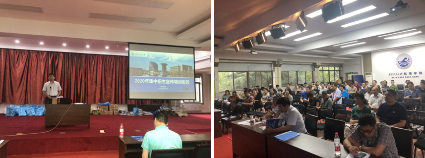 2020年7月21日,为做好学院2020年本科招生宣传工作,结合航海学院负责的“两省一市”实际情况和大类招生实际需要,航海学院召开2020年集中招生宣传培训动员会,确保集中招生宣传各项工作顺利推进。院长潘光、书记孙华强、主管本科教学副院长曾向阳、主管研究生教学副院长崔荣鑫、副书记王银涛、院长助理张龙及“两省一市”招生组组长、招生组老师共计100余人出席会议。首先,航海学院各位领导分别作招生宣传工作动员;随后,会议对2020年学校招生政策的变化政策解读、志愿填报指导、录取常见问题、宣传材料、相关注意事项等方面作出详细解读。接着,对海洋工程类招生政策解读、宣传方案、学科专业、人才培养特色(试验班)等方面进行招生宣传培训;最后,航海学院所负责“两省一市”招生组针对各地具体情况分头召开了招生培训,并发放了招生物资。全力做好2020年航海学院本科招生宣传工作动员工作,努力打响一流生源“保卫战”。