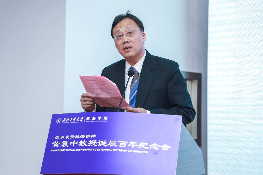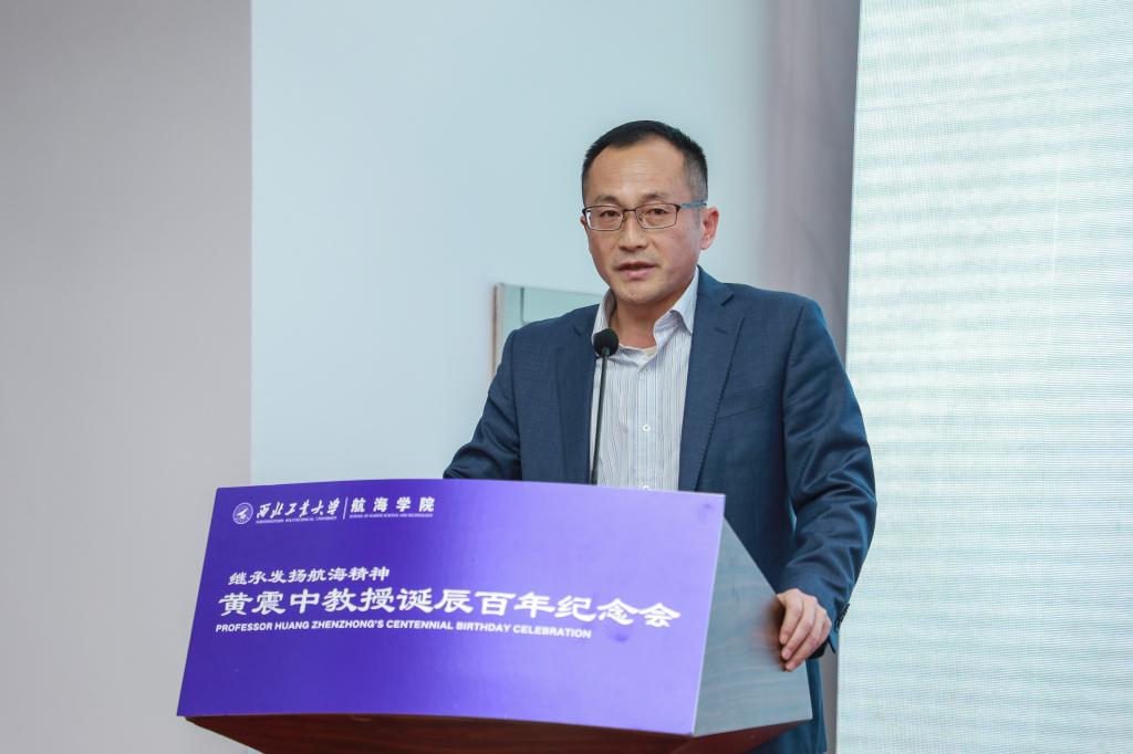 纪念会伊始,潘光代表航海学院对嘉宾们的到来表示热烈欢迎,并详细介绍了黄震中教授的生平与贡献。他表示,黄震中教授开创了中国普通高校系统进行水中兵器高层次人才培养的先河,培养了两位中国工程院院士,并为航海学院的发展打下了坚实的基础。举行黄震中教授诞辰百年纪念活动,不仅是对历史的回顾,对老先生的追思,更是对老一辈“航海人”宝贵精神的体会、思考、感悟、继承和发扬,是对学院文化的凝聚与探讨,是对未来发展的展望。学院将铭记黄震中教授等老一辈科技工作者为我国教育事业和国防科技事业做出的贡献,发扬他们的教育思想和科研精神,传承“航海人”血液中流淌的红色基因和蓝色报国情怀。