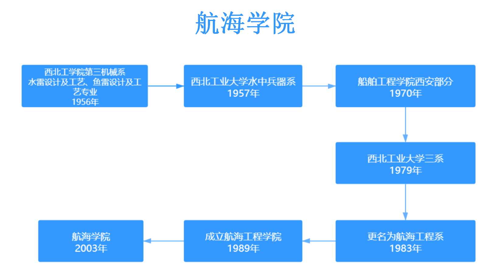 1989年,为深化改革,发挥西北工业大学“三航特色”,经学院校务委员会讨论通过、校长批准,在原“航海工程系”的基础上成立“航海工程学院”,成为学校当时成立最早的学院之一。