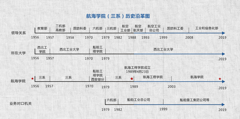 1970年,国务院决定将国防工业院校分别划归各工业部领导,西工大归三机部,西工大水中兵器系和哈尔滨军事工程学院海军工程系归六机部(造船工业部),不久六机部决定由两系合并组建船舶工程学院,三系暂称“船舶工程学院西安部分”。